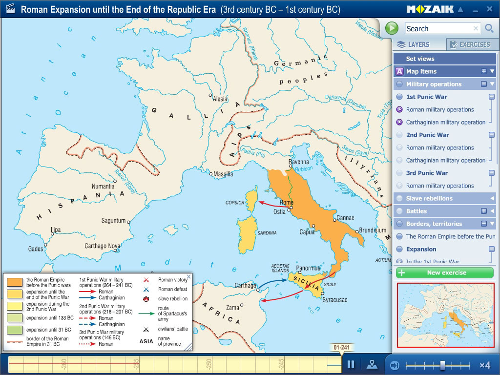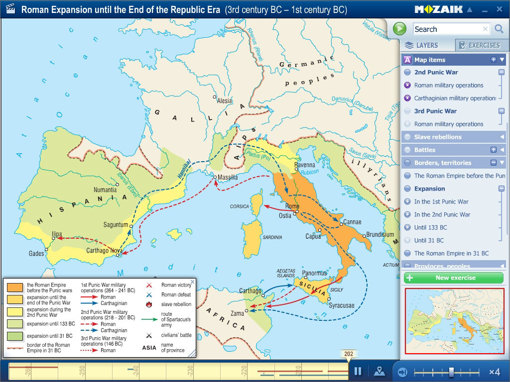 A különböző történelmi korok egyes elemeinek, jellegzetességeinek kiemelése után programunk képes bemutatni ezek változásait az idő függvényében. Így az idő múlásával együtt szemléltethetők ezen események földrajzi hatásai (háborúk, kereskedelem, egyezmények), valamint segítik a diákokat a területhez és időhöz kötött változások összefüggéseinek felismerésében és megértésében.