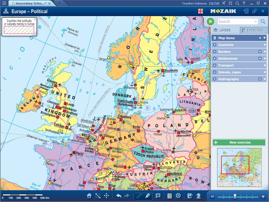 A térképek szöveges tartalmai kereshetők, az egyes rétegek egyenként ki- és bekapcsolhatók. Könnyen létrehozhatók olyan nézetek, melyek a tanóra témájához leginkább igazodnak, így növelve az óra hatékonyságát.